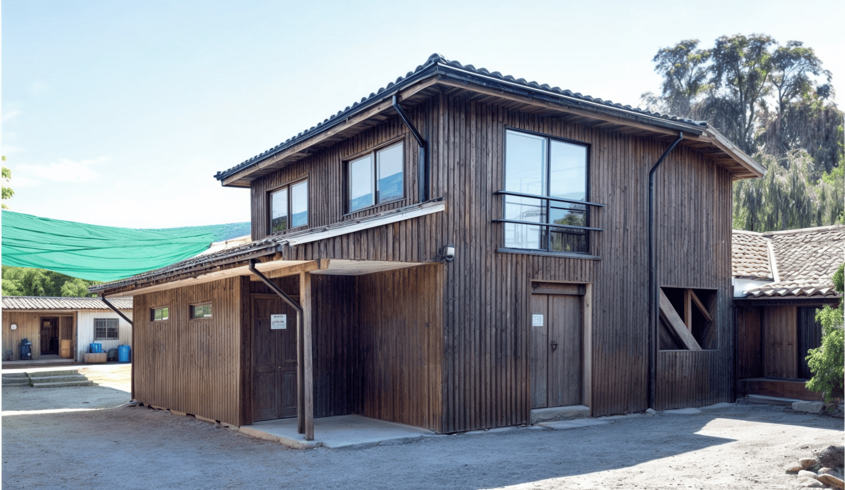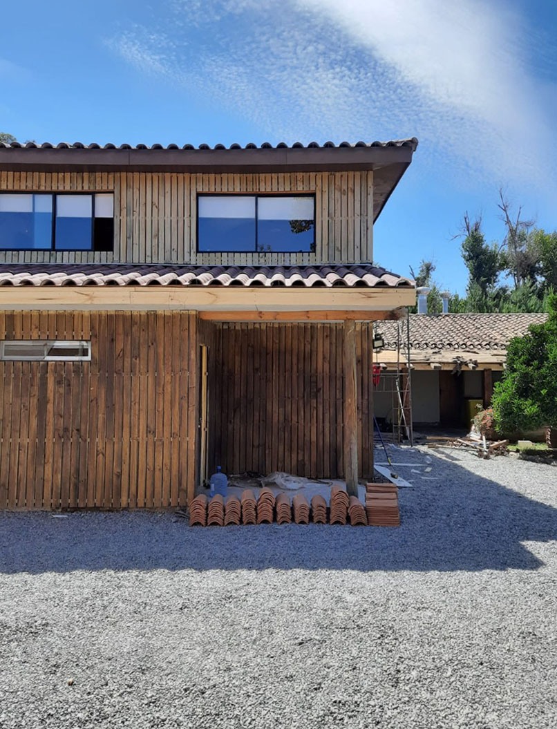 Diseño de Fachada ventilada para unificar construcción de distinta materialidad y otorgar mejor acondicionamiento térmico. Diseño realizado en para el Plan de mejoramiento de las Bases Brigada CONAF.