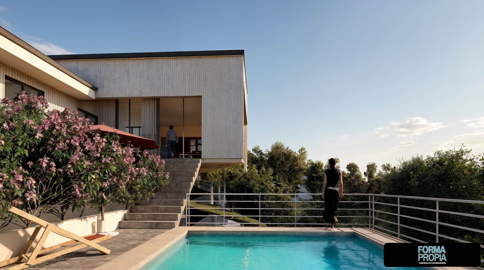 Desde las primeras etapas se abordó el proyecto entendiendo que la topografía no debía ser un obstáculo, sino una oportunidad para generar una implantación cuidadosa, adaptada al terreno y que minimizara las intervenciones invasivas. La solución consistió en el diseño de una base estructural metálica, que permitió levantar la vivienda desde el nivel natural del terreno, logrando estabilidad y seguridad estructural sin necesidad de grandes movimientos de tierra.